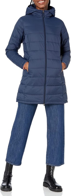 Essentials Women's Lightweight Water-Resistant Hooded Puffer Coat
