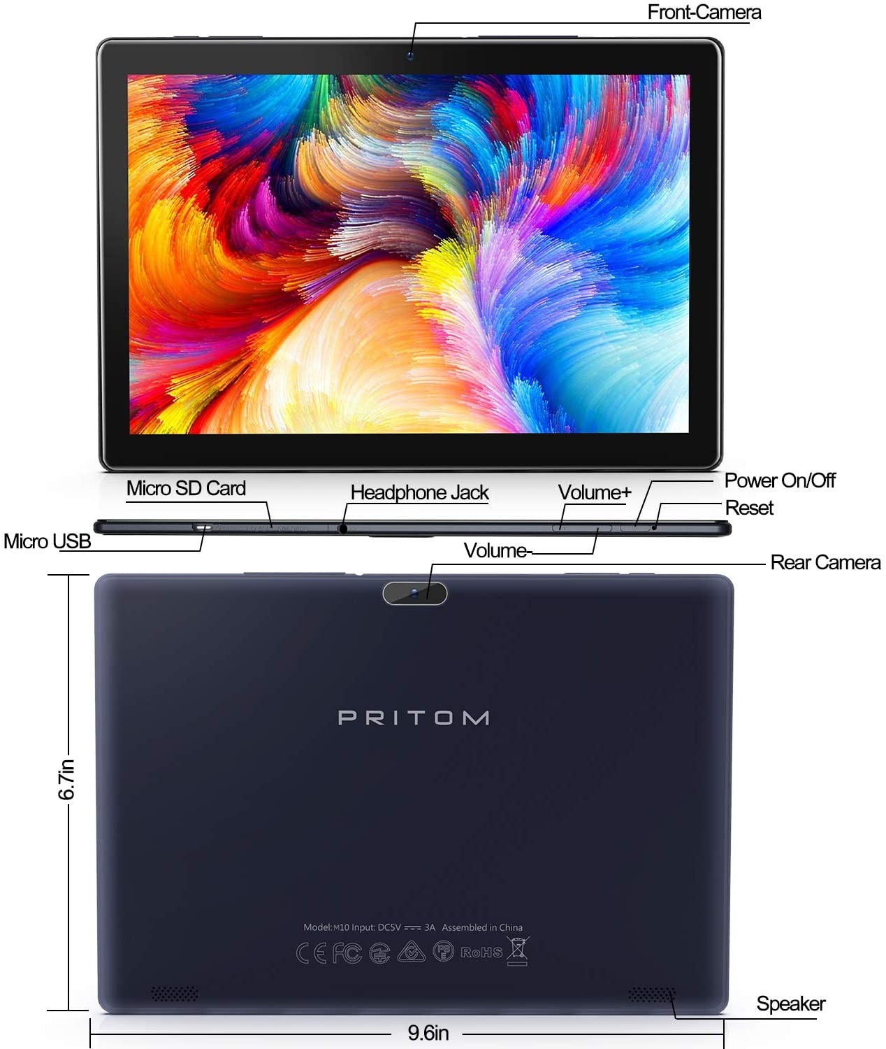 Android Tablet 10 inch, PRITOM M10, 2 GB RAM, 32 GB Android 10.0 Tablet, 10.1 inch IPS HD Display, GPS, FM, Quad-Core Processor, Wi-Fi (M10 Black)