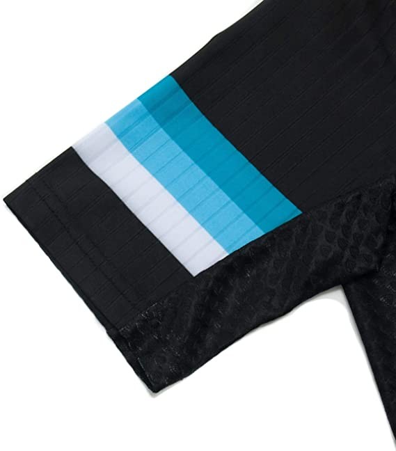 ❤【High Quality Fabric】The jersey are spliced of 3 fabrics. Front is elastic lycra, sleeves is striped lycra, and back is scalloped polyester fabric,more comfortable and Breathable.