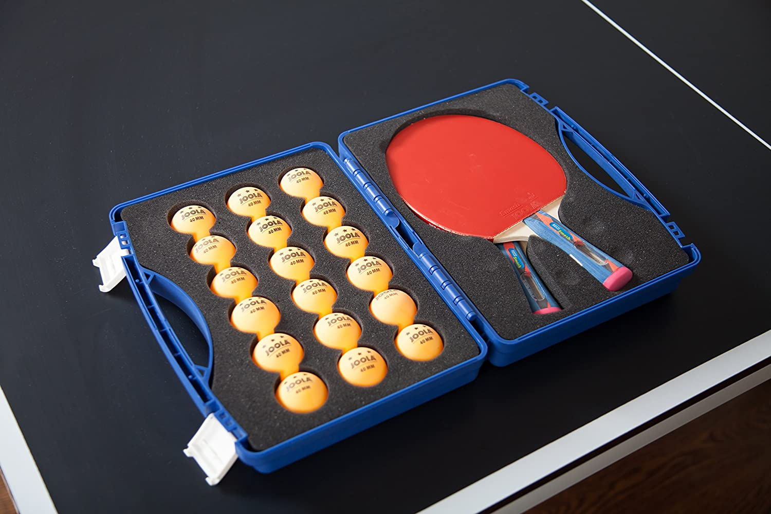 • INDOOR AND OUTDOOR PLAY: This storage case of rackets and balls will work indoors or outdoors. The quality ensures the entire kit of paddles and balls can be used by kids and adults. Great gift for someone who already owns a JOOLA ping pong table.