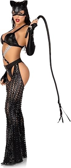 • COMPLETE THE LOOK: Add your favorite cat accessories to our Halloween costume set! Combine a whip and be the one in charge in this sexy costume. The laser cut chaps give you an alluring style! Whip shown not included