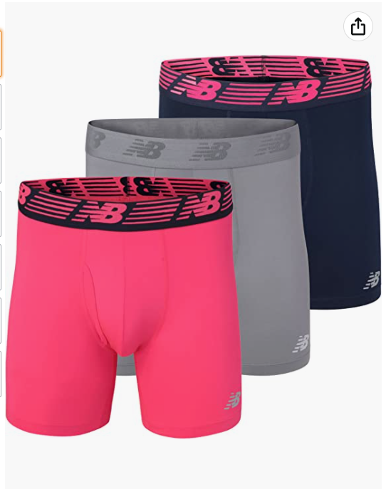 New Balance Men's 6" Boxer Briefs Front Fly, 3 Pack