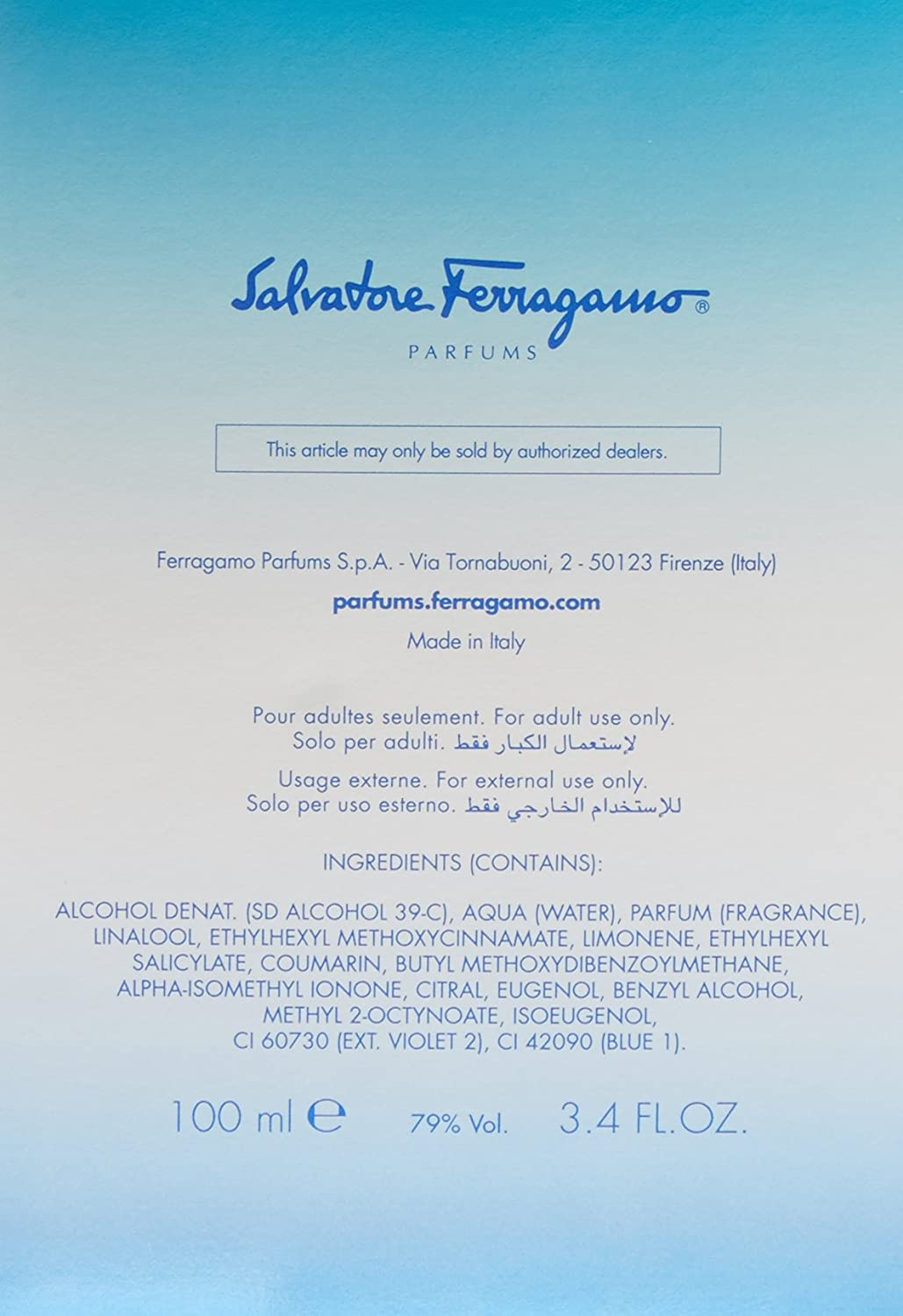 Salvatore Ferragamo Incanto Blue Cologne Eau de Toilette Spray 3.4 oz