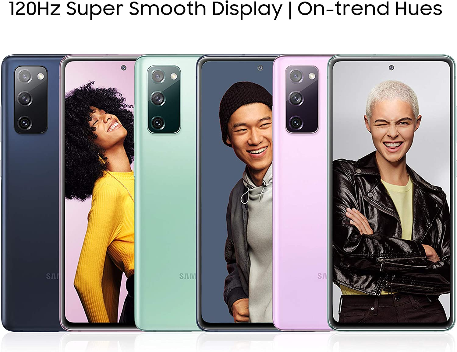 With triple pro-grade cameras, a smooth 120Hz refresh rate display, and an all-day smart battery¹, the Samsung Galaxy S20 FE 5G recharges in minutes for outstanding innovation. Thanks to the 30X Space Zoom, the triple-lens camera system not only captures bright, high-quality images and video, but also zooms from a distance. Single Shot AI mode lets you capture multiple images and videos with the touch of a button. Shooting at night? No problem. With the help of Night Mode, the Galaxy S20 FE 5G phone can capture clear images without flash. The Samsung Galaxy S20 FE 5G series is tailored for those who want the latest technology without compromise. Choose from 6 coloured shades with a smooth matte finish. ¹ Battery power consumption depends on usage pattern, results may vary.