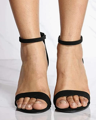 TOP Moda Women's Hannah-1 Platform Block Heel Metal Glitter Party Ankle Strap High Heel Sandals, Black//White, 0
